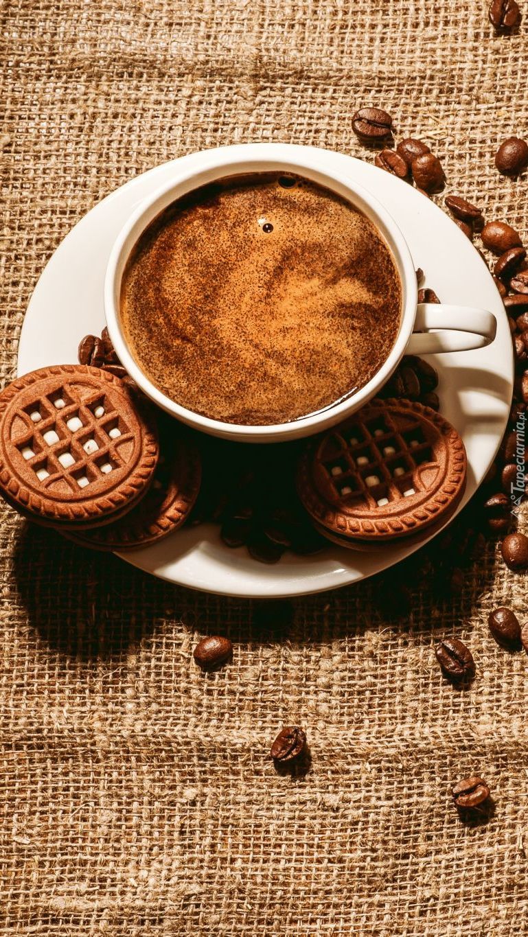 Edytor tapety: Ciasteczka obok filiżanki z kawą
