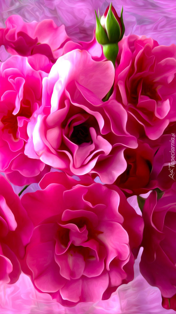 Edytor tapety: Pąk i kwiaty róży