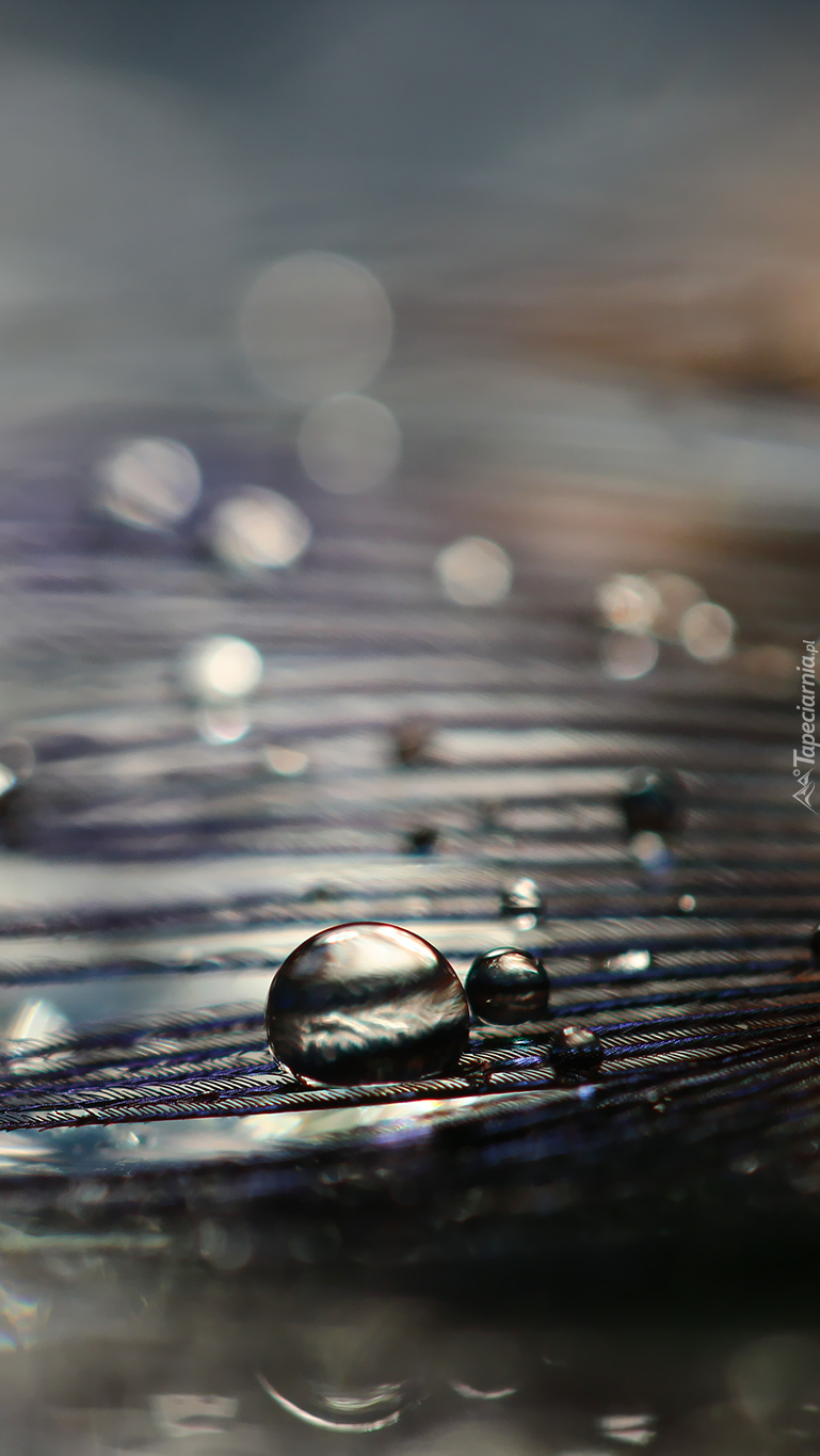 Edytor tapety: Piórko z kropelkami na rozmytym tle