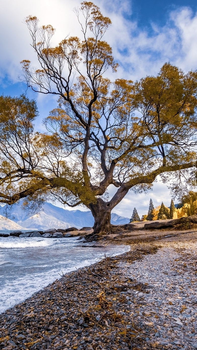 Edytor tapety: Rozłożyste drzewo na brzegu morza