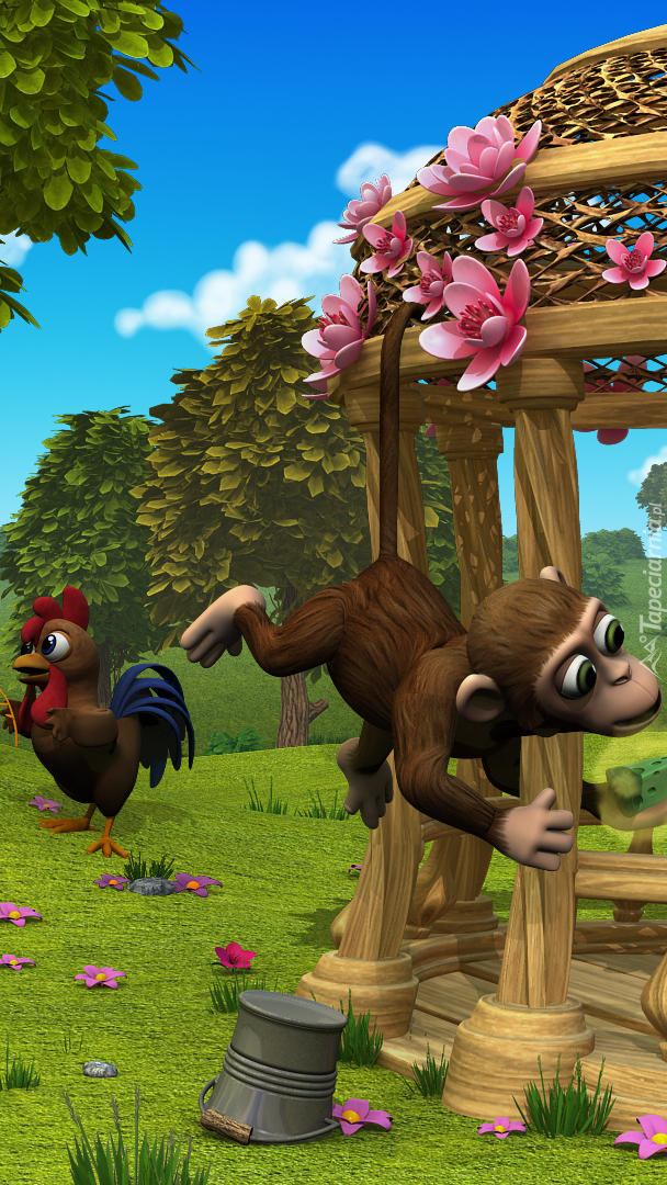 Edytor tapety: Kogut i małpa z gry Farmerama