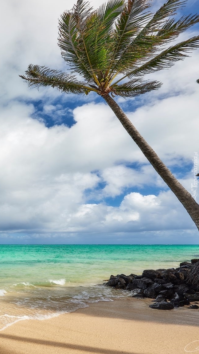 Edytor tapety: Pochylona palma nad morzem
