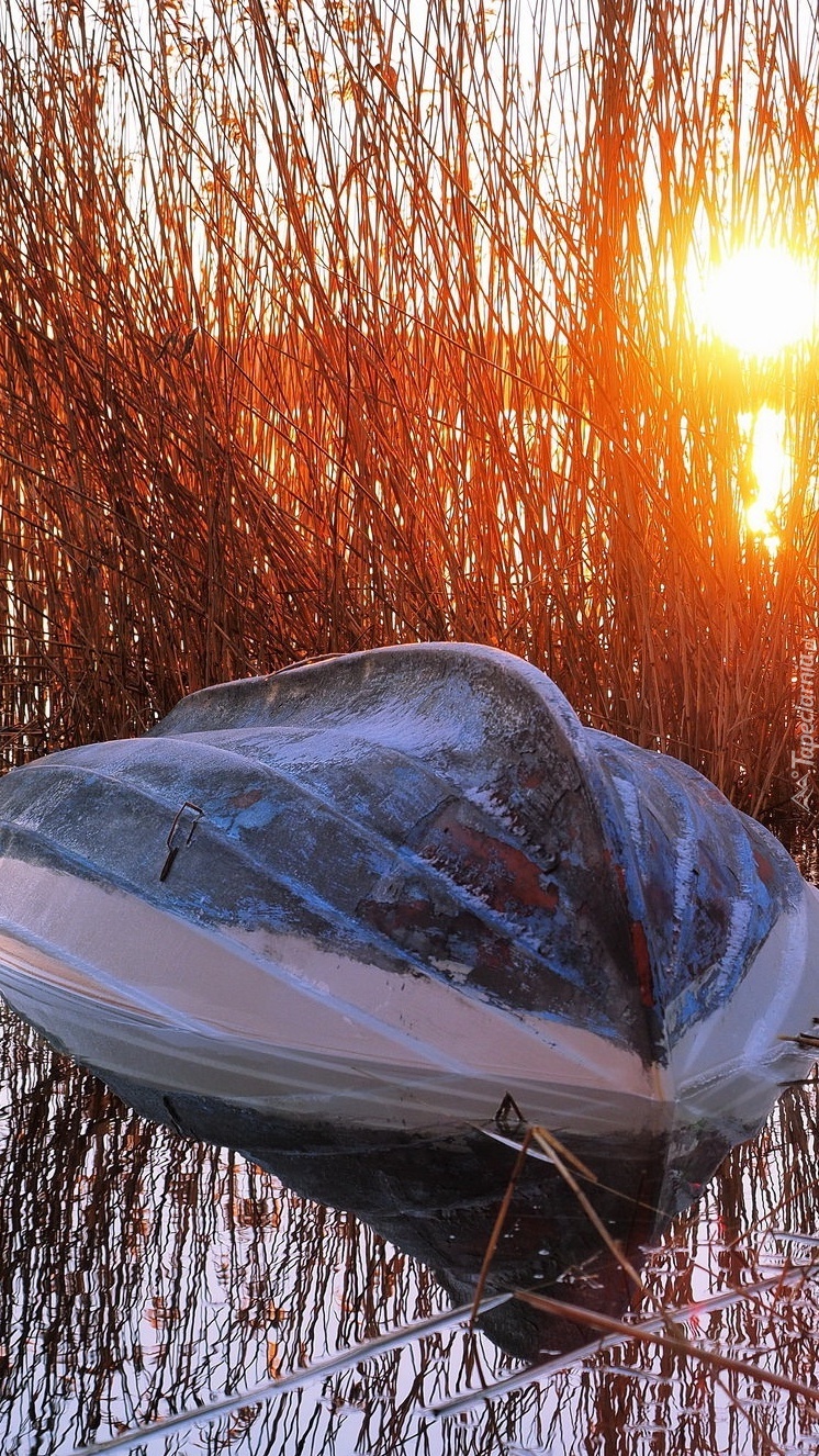 Edytor tapety: Przewrócona łódka w trzcinach