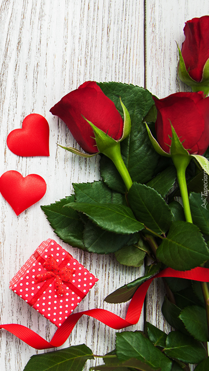 Edytor tapety: Róże z serduszkami i prezentem