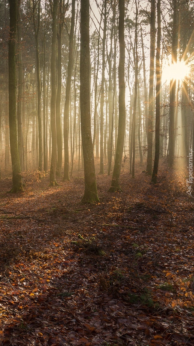 Edytor tapety: Promienie słońca w jesiennym lesie