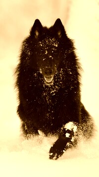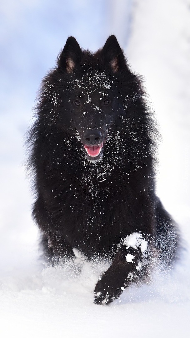 Edytor tapety: Owczarek belgijski tervueren na śniegu
