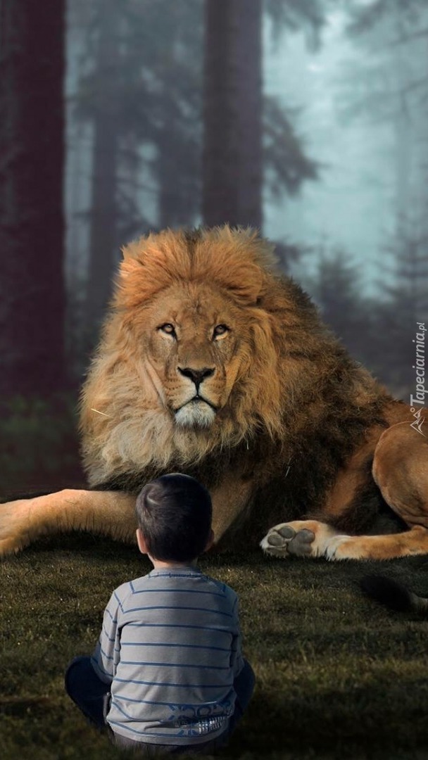 Edytor tapety: Spotkanie chłopca z lwem