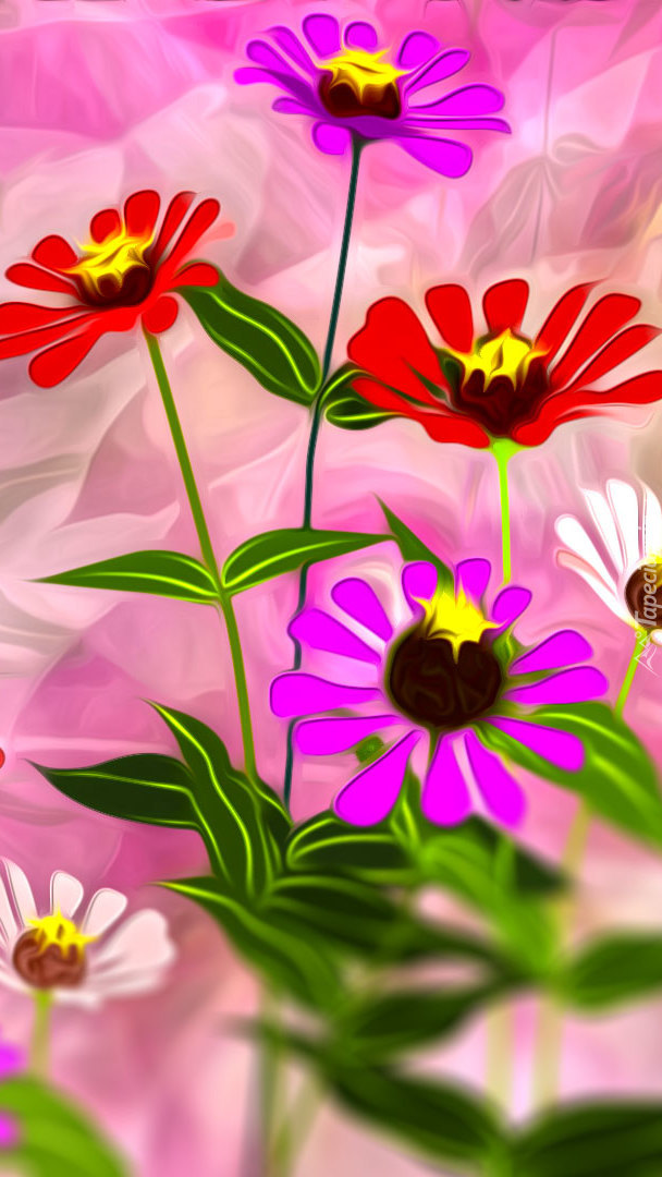 Edytor tapety: Różnokolorowe kwiaty w grafice