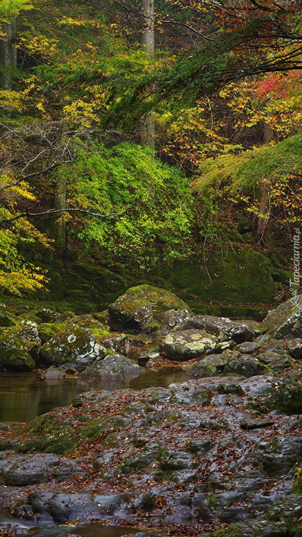 Edytor tapety: Omszałe kamienie w leśnym strumyku