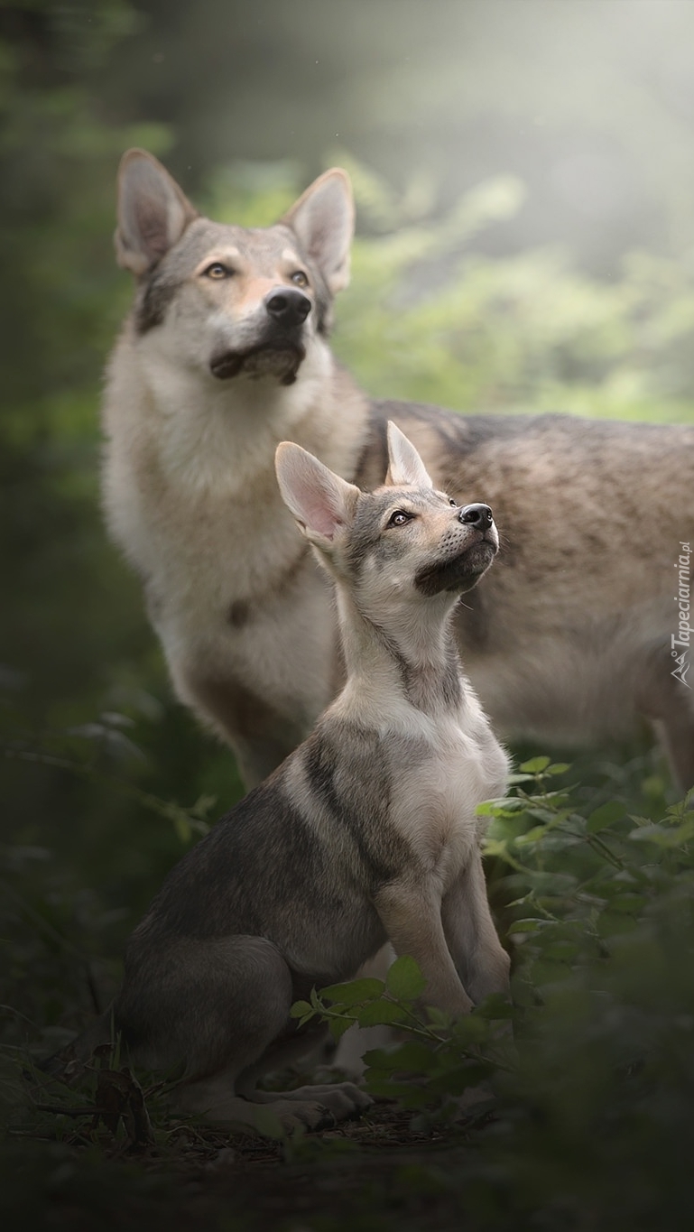 Edytor tapety: Szczeniak elkhund z mamą