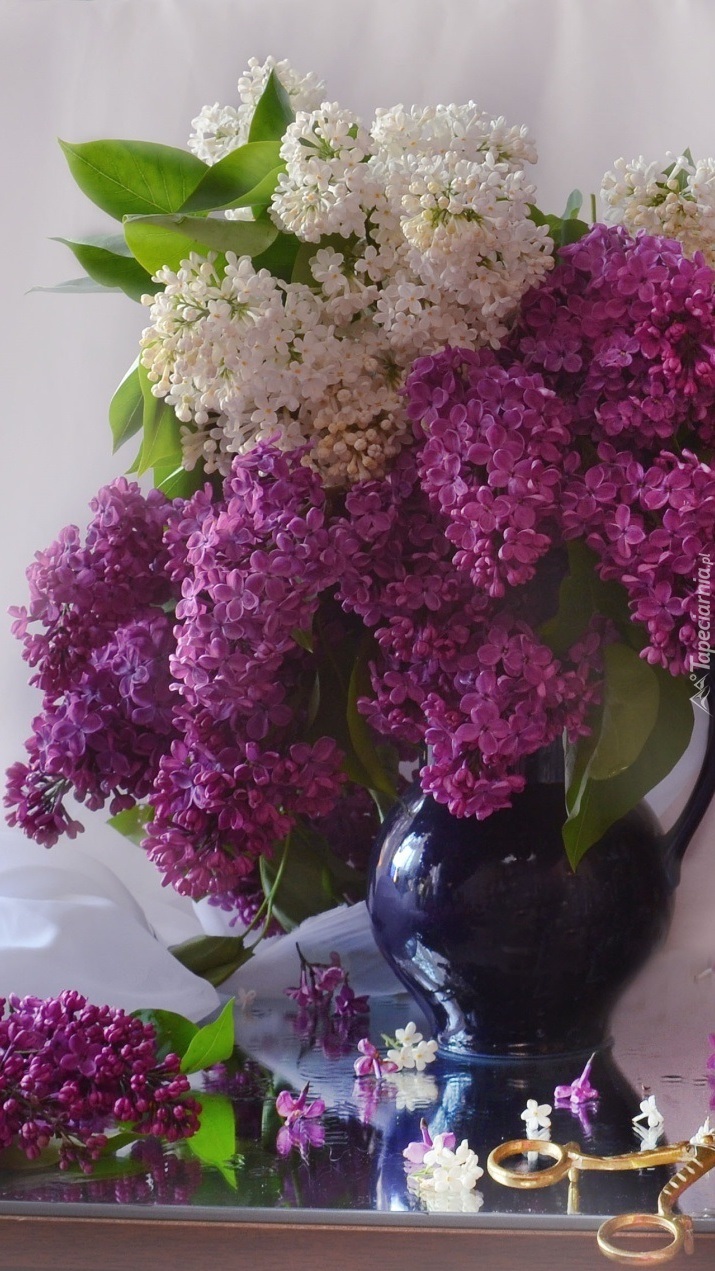 Edytor tapety: Biały i fioletowy bez w wazonie