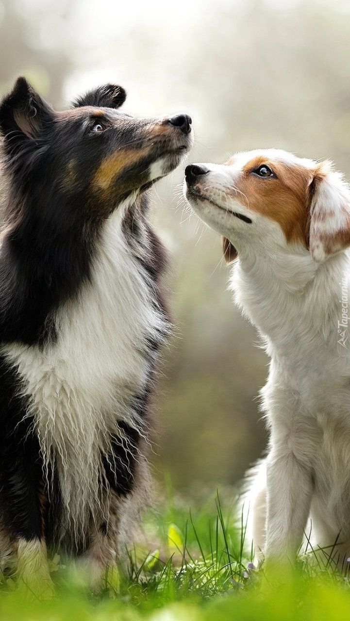 Edytor tapety: Dwa border collie na trawie