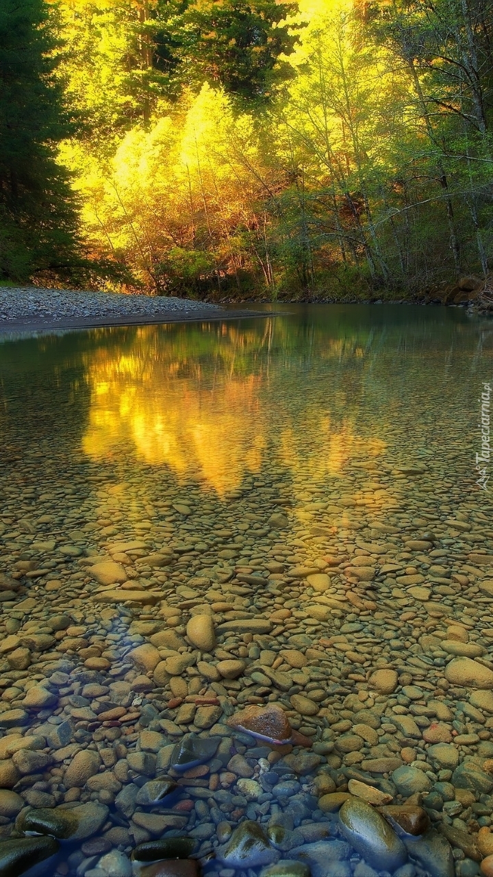 Edytor tapety: Płytka rzeka w lesie