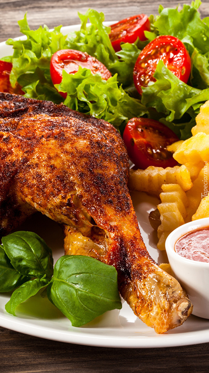 Edytor tapety: Udko pieczone z frytkami i warzywami