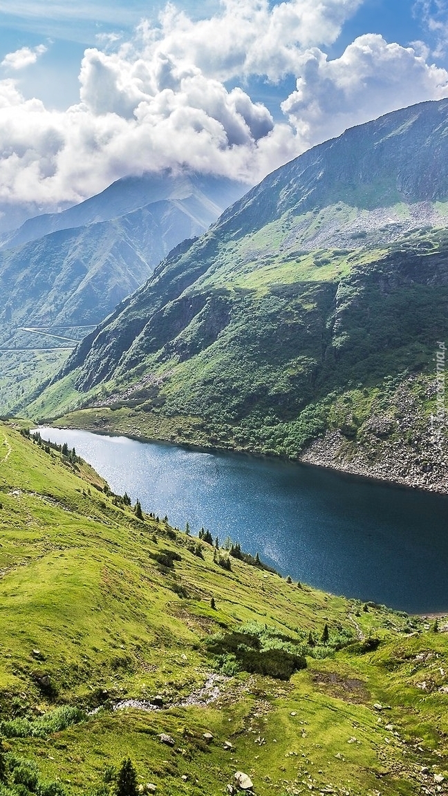 Edytor tapety: Góry i chmury nad jeziorem