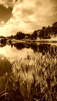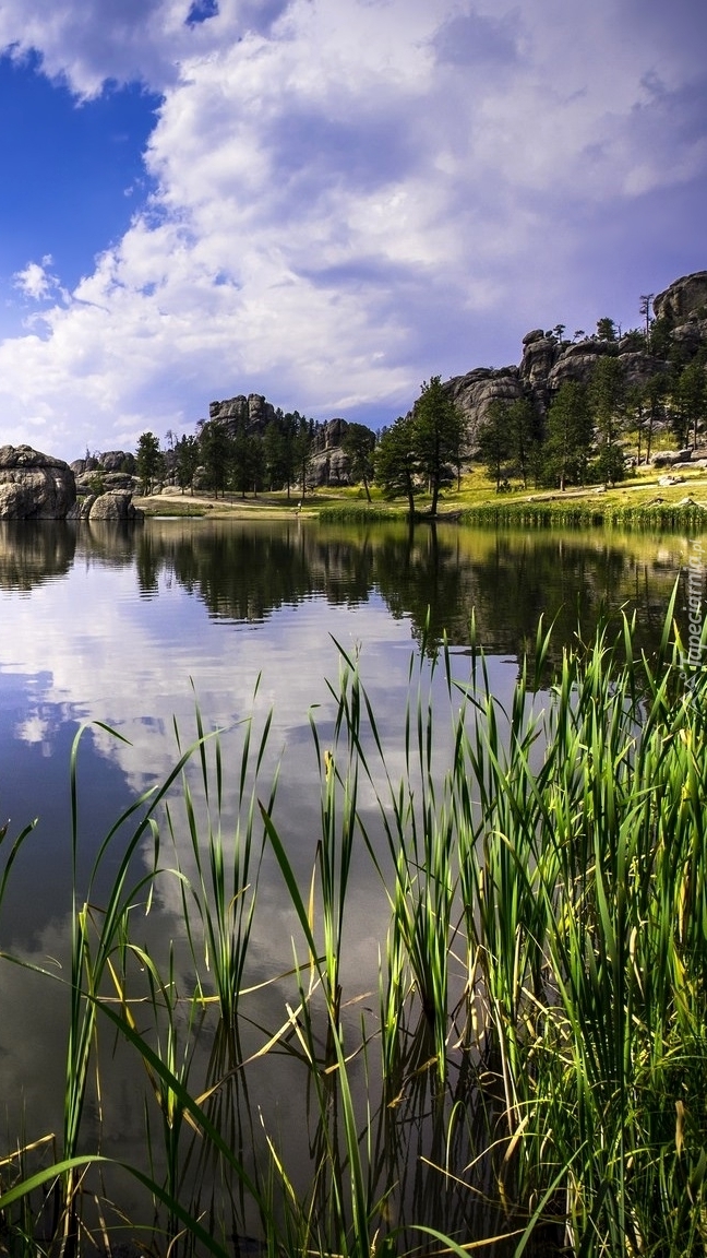Edytor tapety: Drzewa i trzciny nad jeziorem