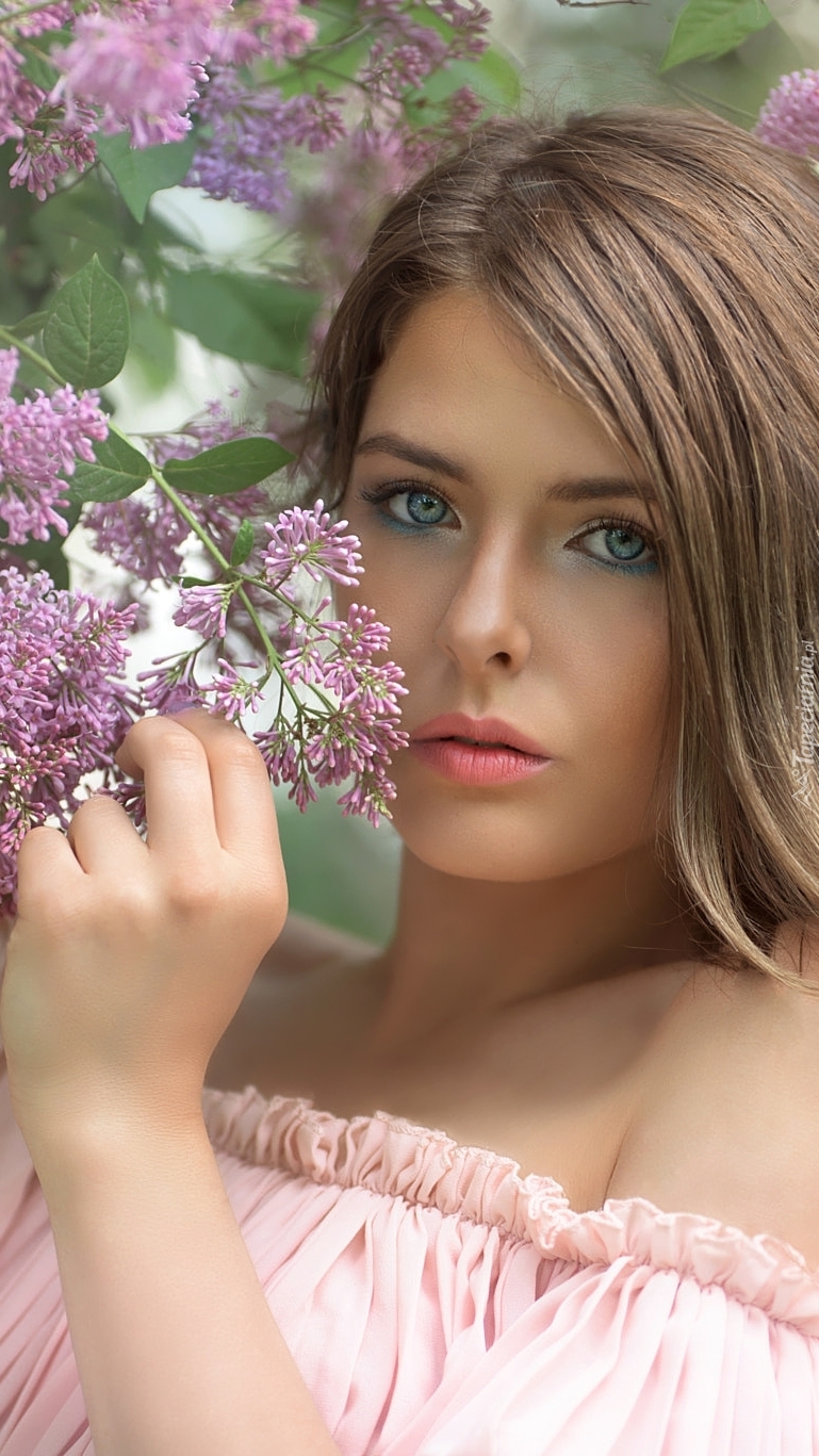 Edytor tapety: Dziewczyna przy gałązkach bzu