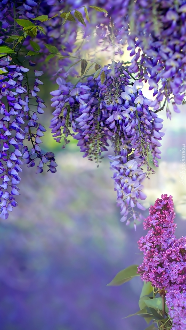 Edytor tapety: Zwisające gałązki kwitnącej glicynii