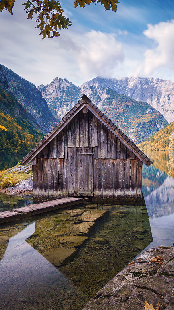 Edytor tapety: Drewniana szopa na jeziorze Obersee
