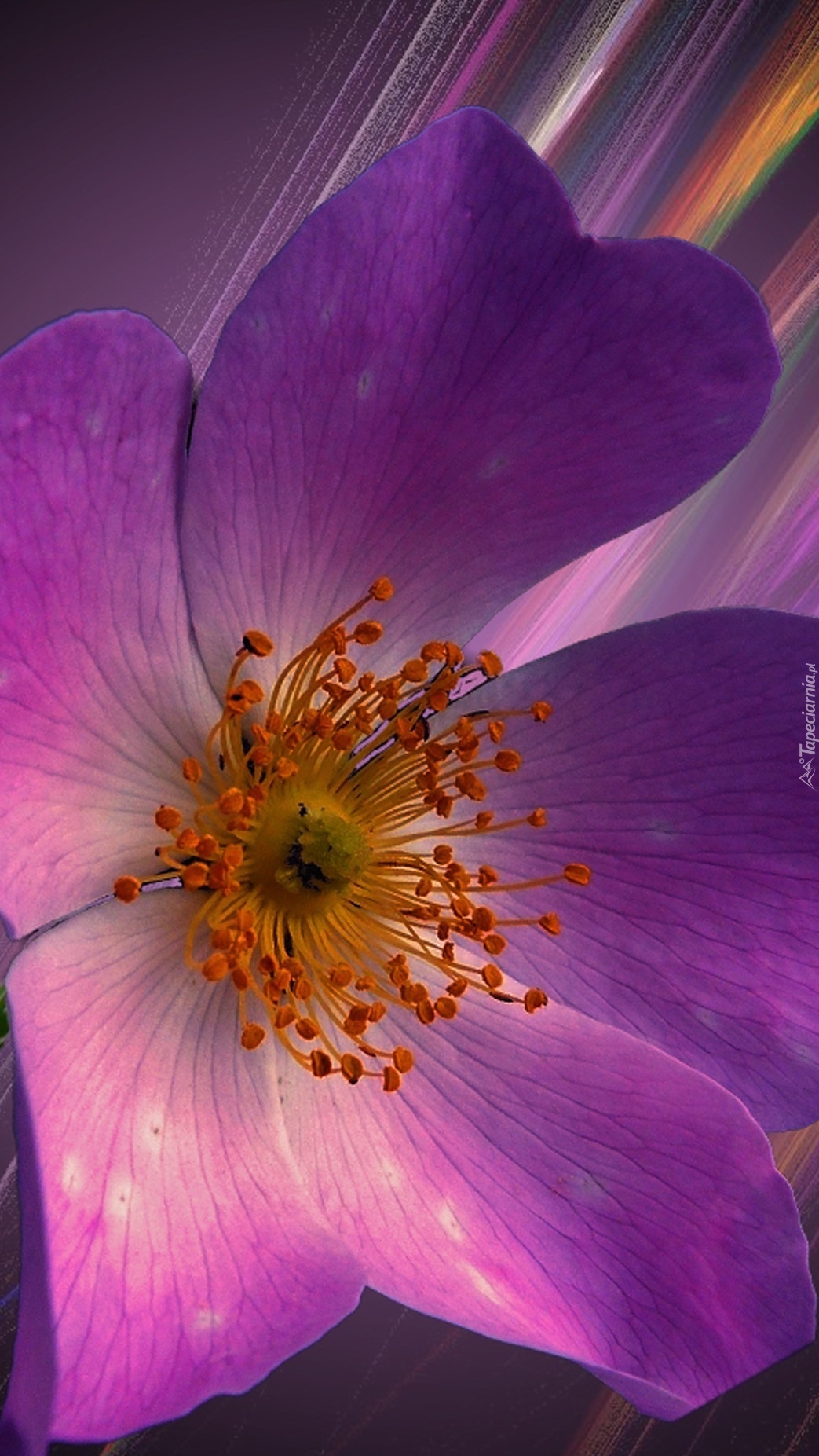 Edytor tapety: Graficzne refleksy ukazujące piękno fioletowego kwiatu