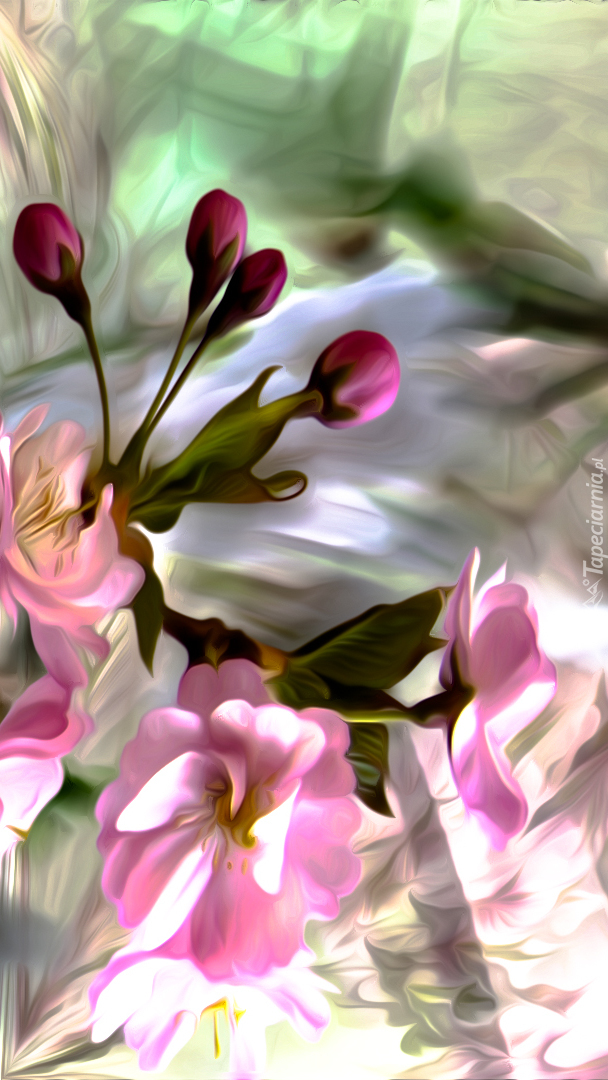Edytor tapety: Różowe kwiatki z pąkami