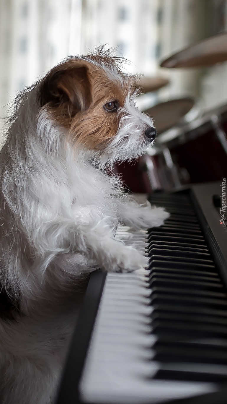 Edytor tapety: Pies grający na pianinie