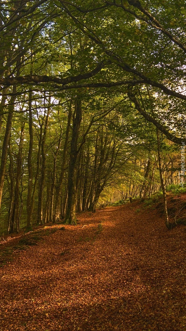 Edytor tapety: Leśna ścieżka usłana liśćmi