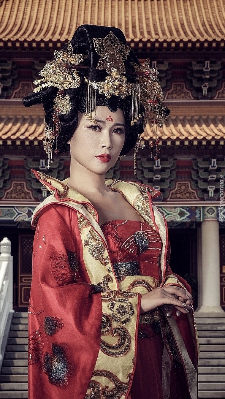 Edytor tapety: Gejsza w czerwonym kimonie