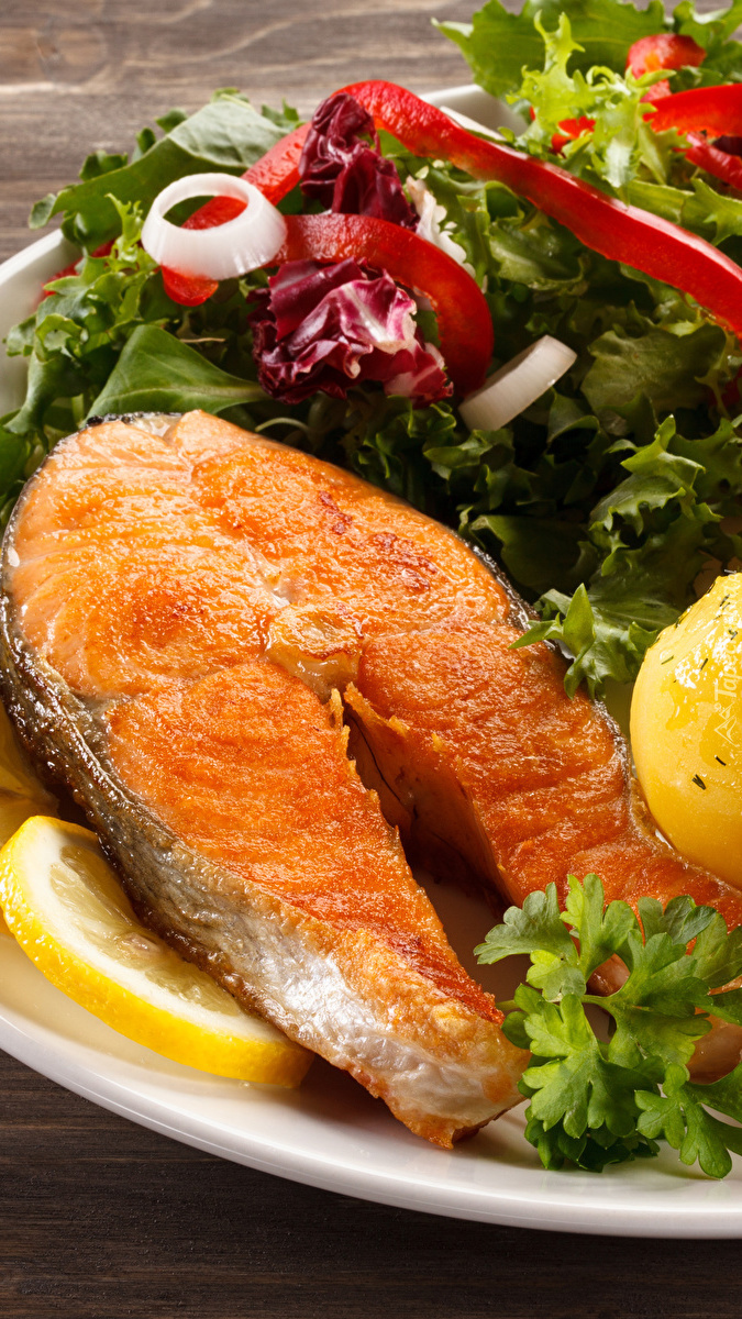 Edytor tapety: Łosoś z ziemniakami i sałatką