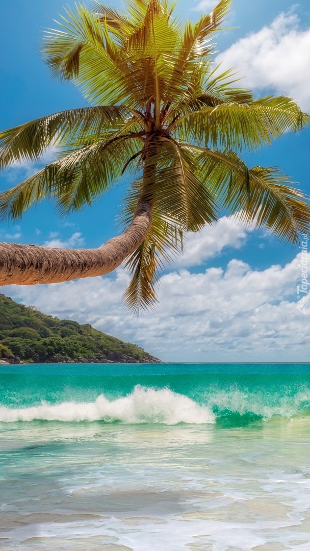 Edytor tapety: Pochylona palma nad morzem