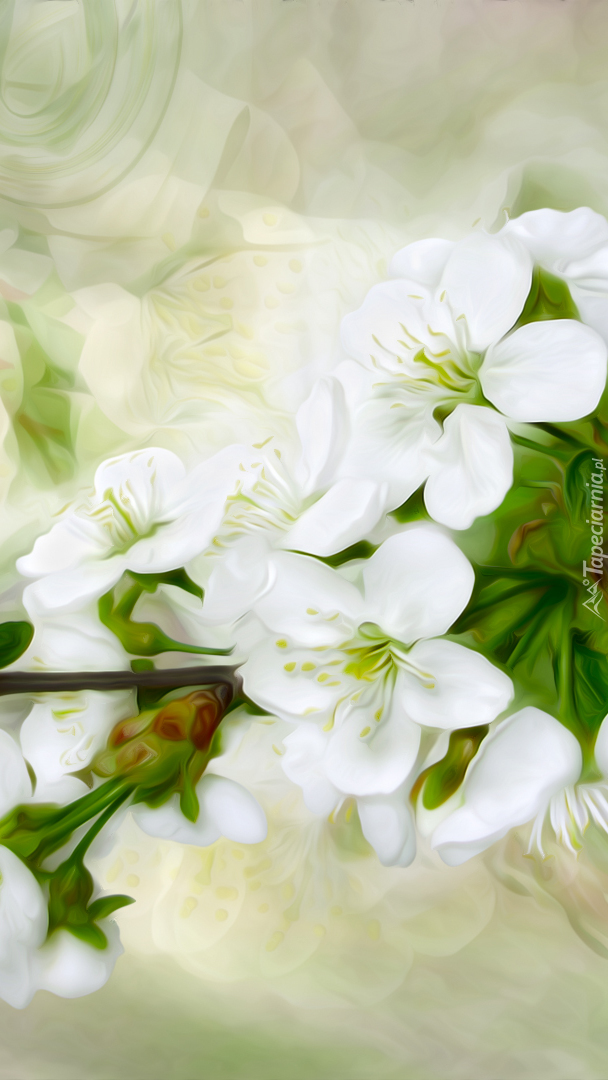 Edytor tapety: Gałązka białych kwiatów