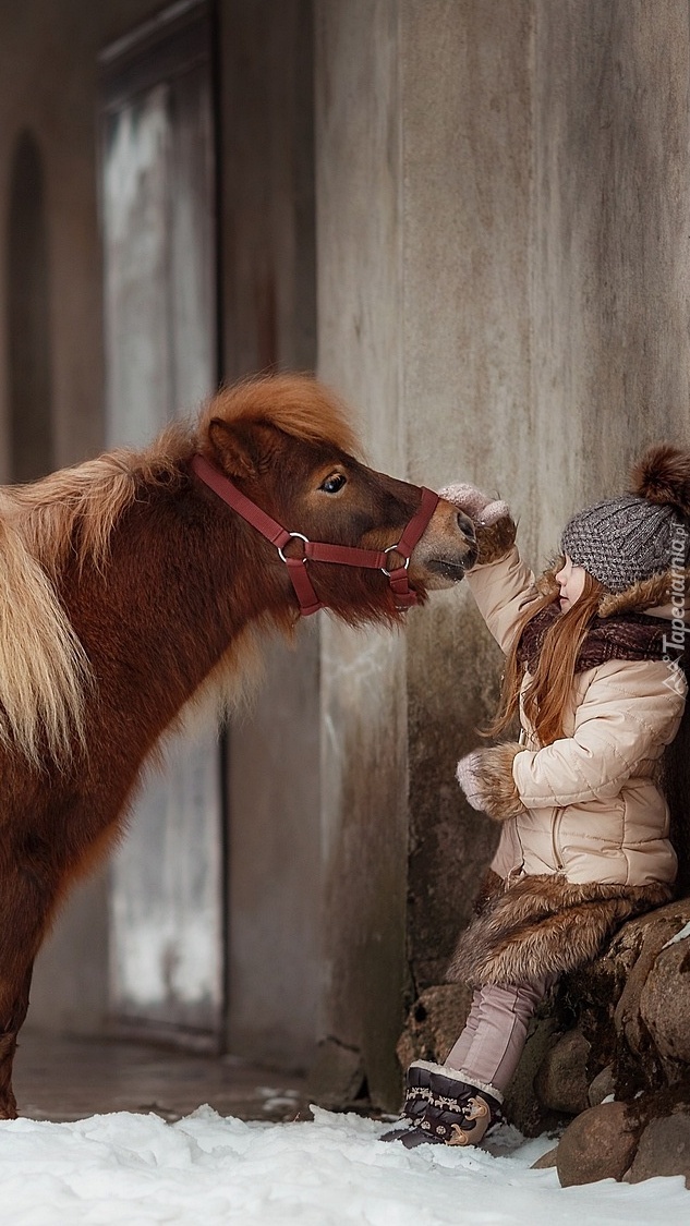 Edytor tapety: Dziewczynka głaskająca kucyka