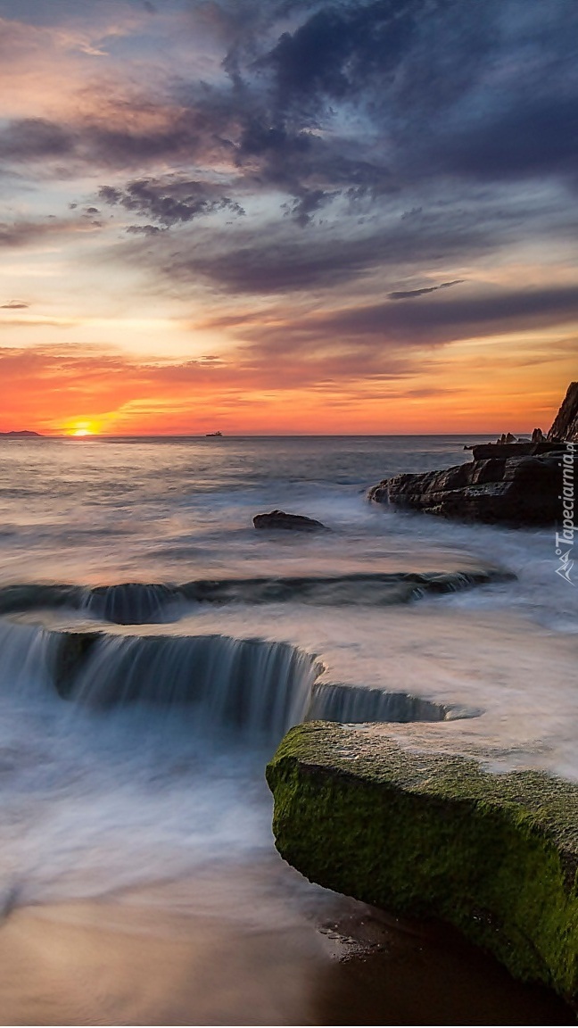 Edytor tapety: Morze po skałach płynące