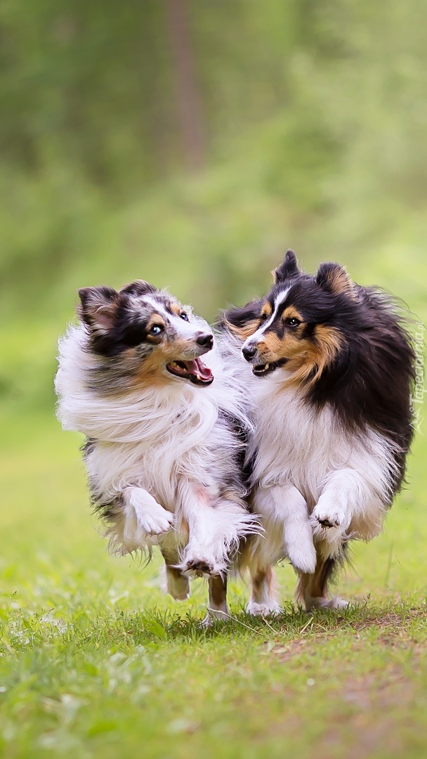 Edytor tapety: Biegajace owczarki szetlandzkie