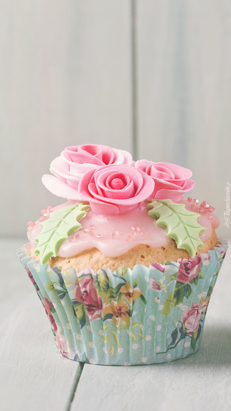 Edytor tapety: Babeczka z lukrowymi różyczkami