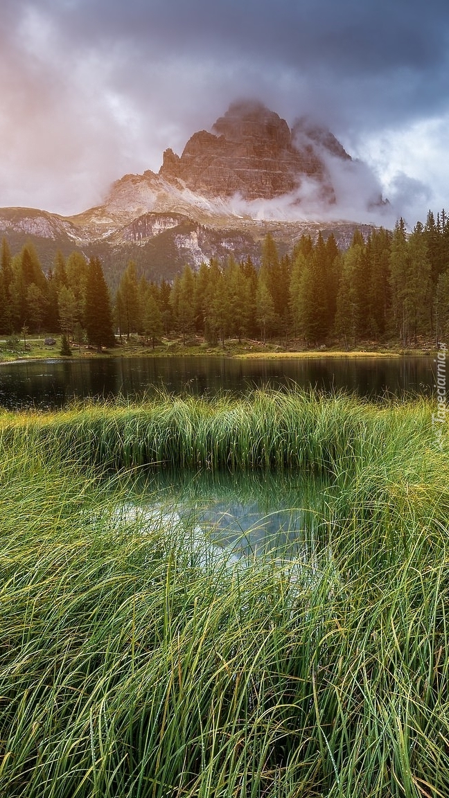 Edytor tapety: Góry Dolomity nad jeziorem Antorno Lake