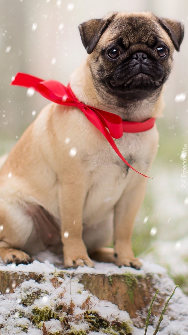 Edytor tapety: Mops z kokardką na szyi