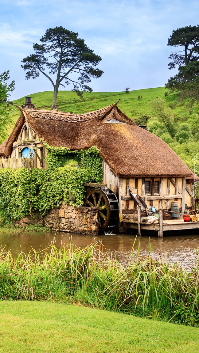 Edytor tapety: Młyn wodny na rzece