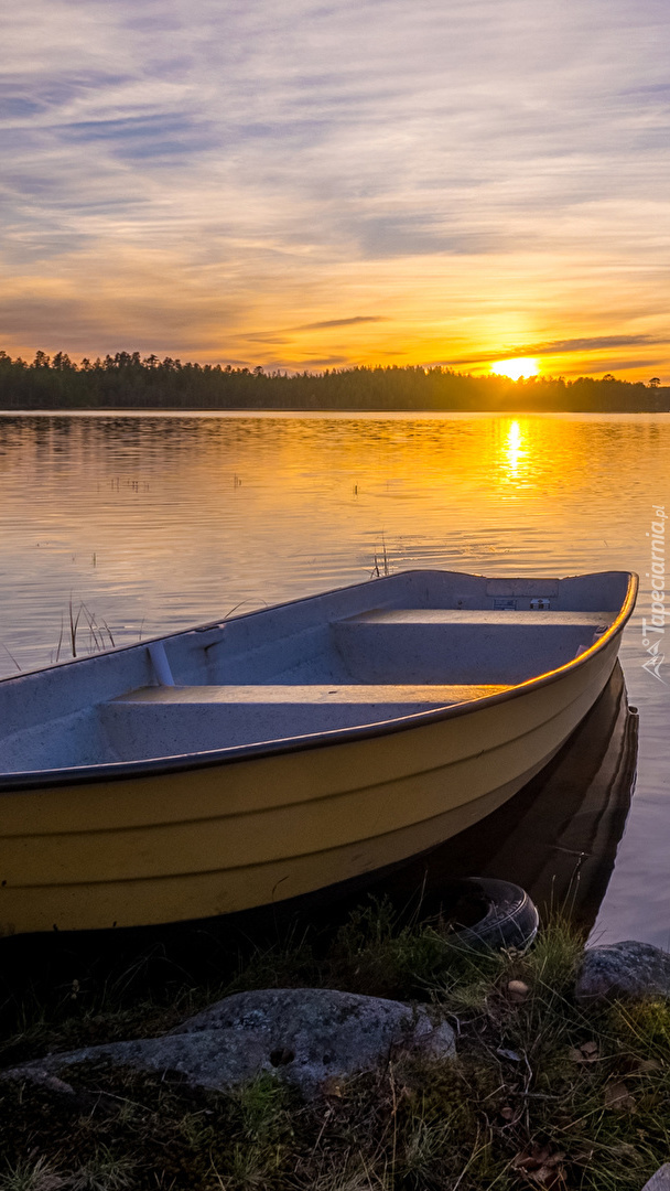 Edytor tapety: Łódka w blasku wschodzącego słońca