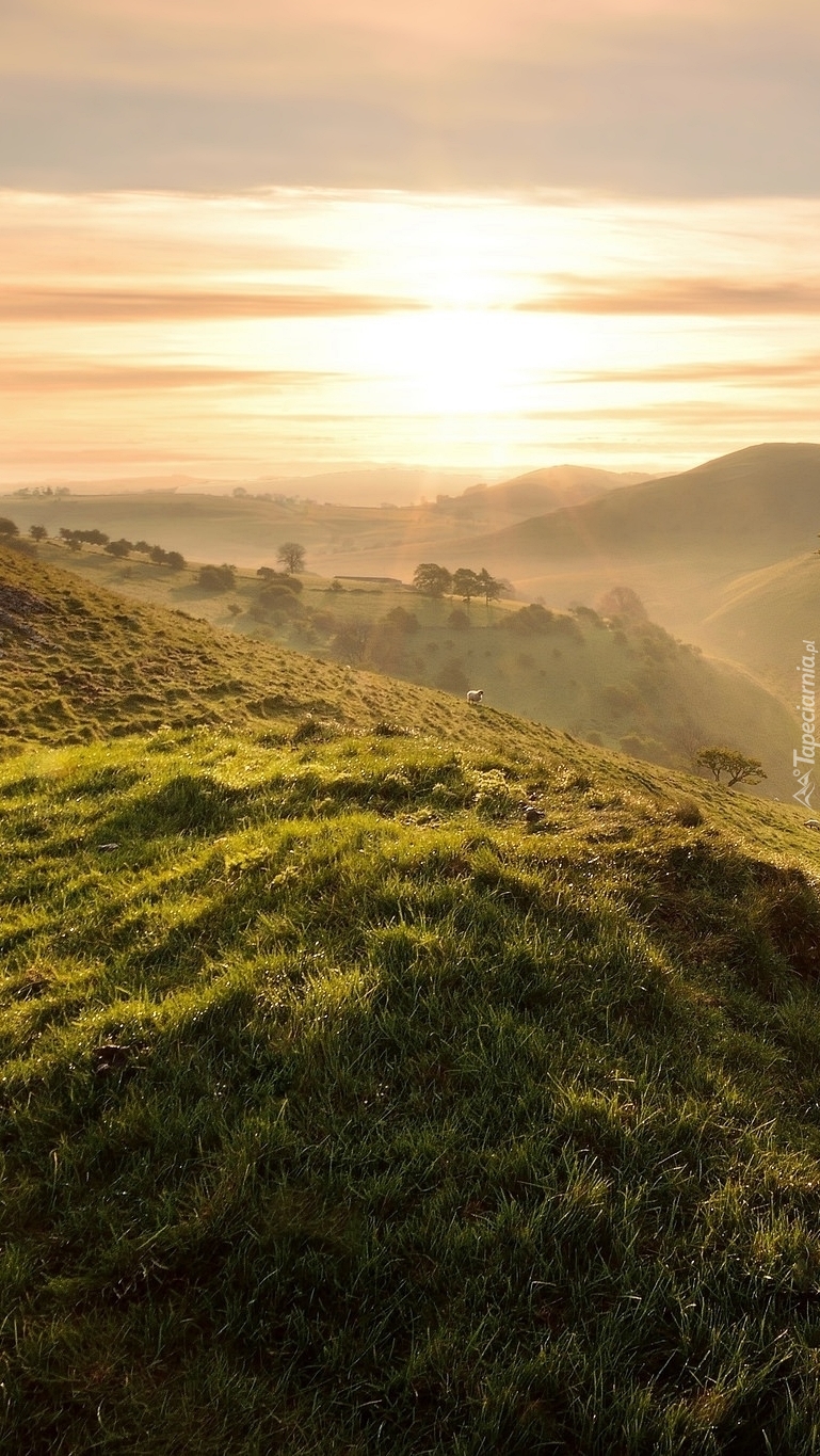 Edytor tapety: Wzgórza w promieniach zachodzącego słońca