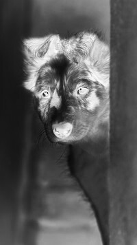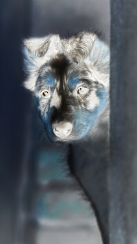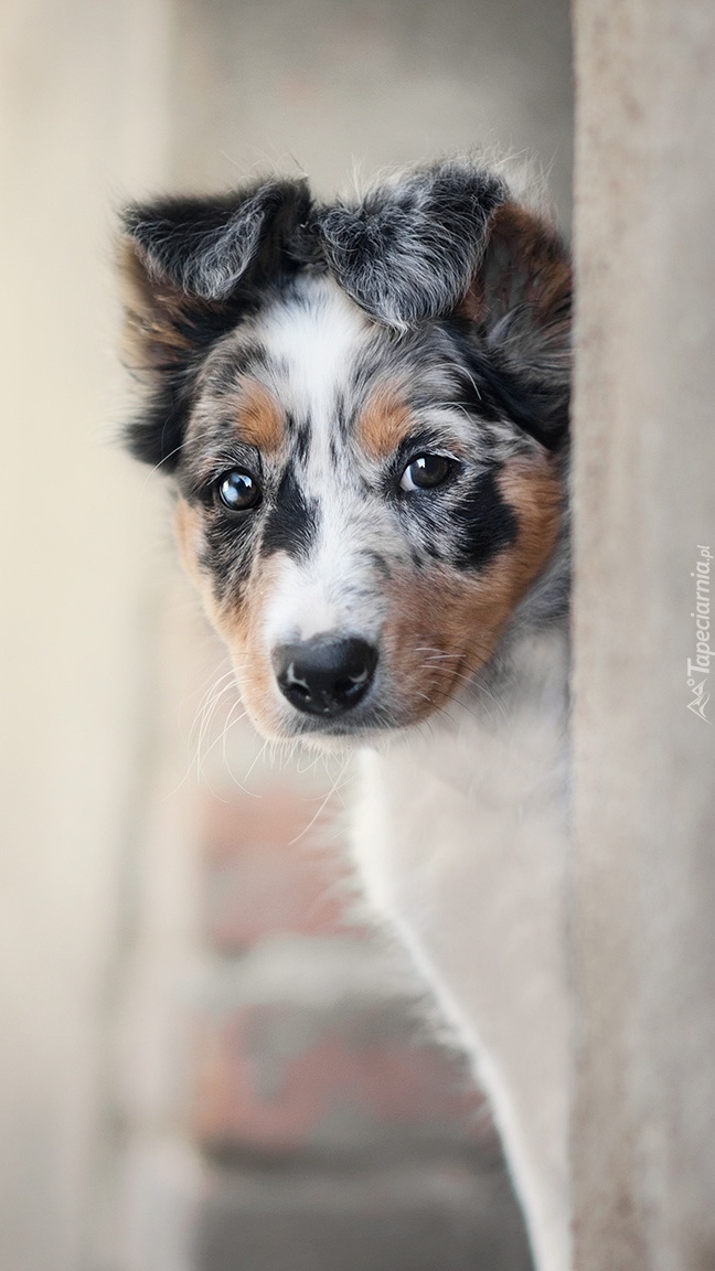 Edytor tapety: Szczeniak wyglądający zza ściany