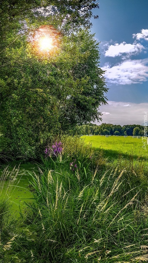 Edytor tapety: Drzewa na polu w przebijającym świetle