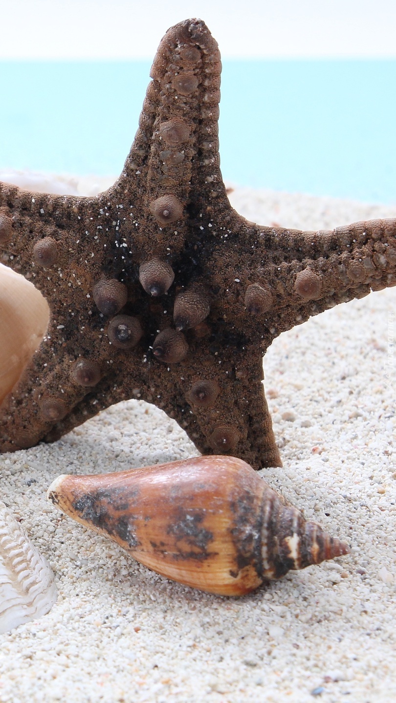 Edytor tapety: Rozgwiazda i muszelka na piasku
