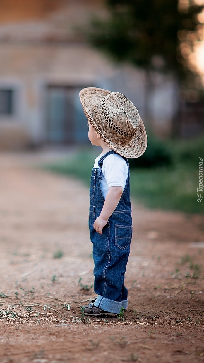 Edytor tapety: Mały chłopczyk w dużym kapeluszu