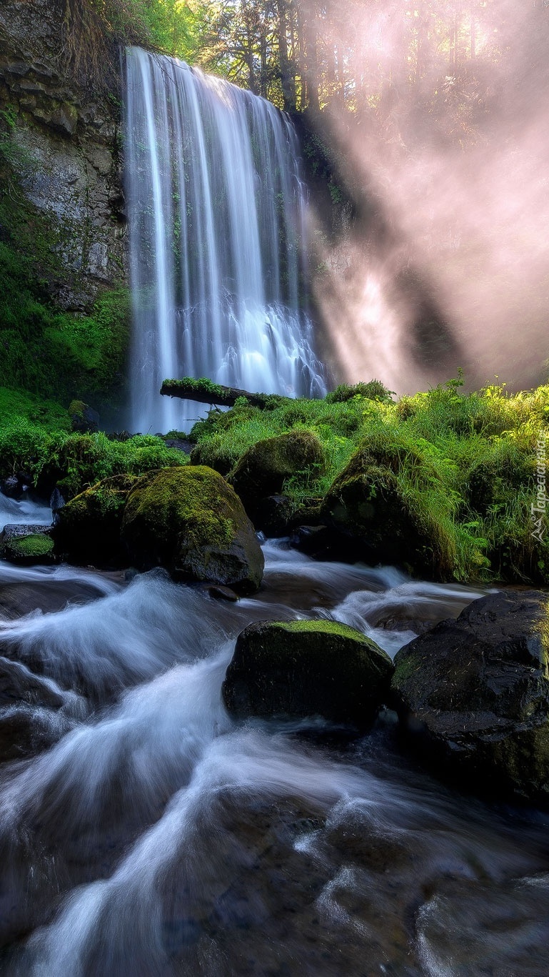 Edytor tapety: Wodospad przy skale