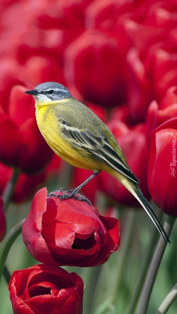 Edytor tapety: Sikorka na płatkach tulipana