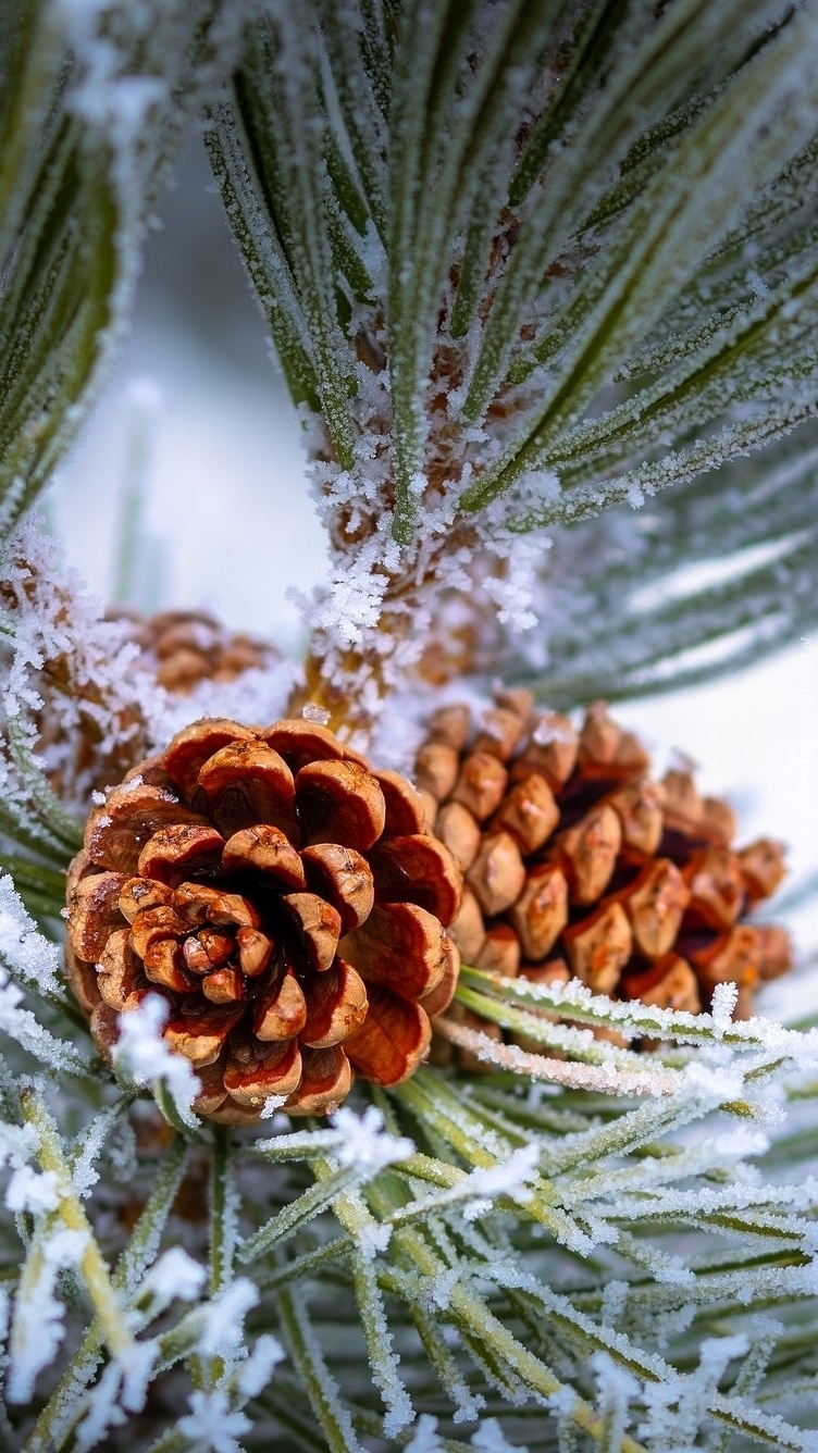Edytor tapety: Szyszki na oszronionej gałązce