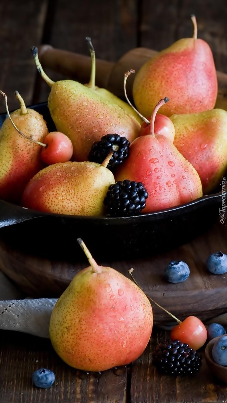 Edytor tapety: Gruszki z jeżynami i borówkami
