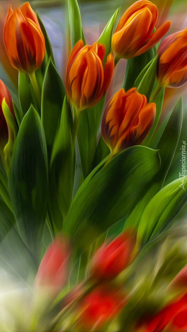 Edytor tapety: Pomarańczowe tulipany w grafice