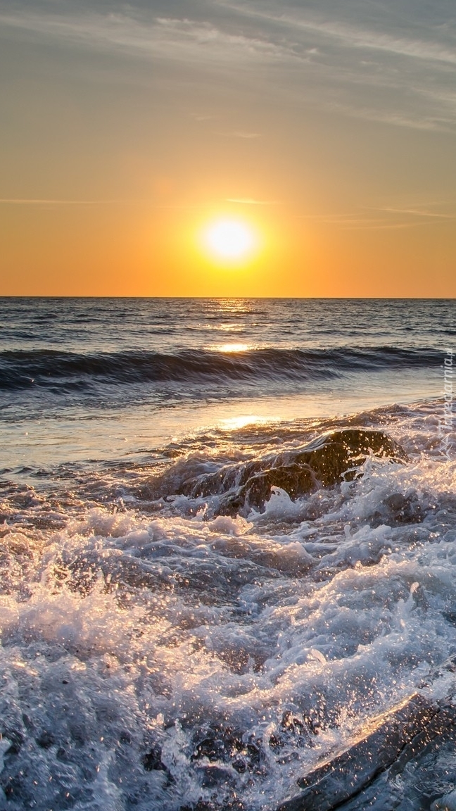 Edytor tapety: Wschód słońca nad falującym morzem